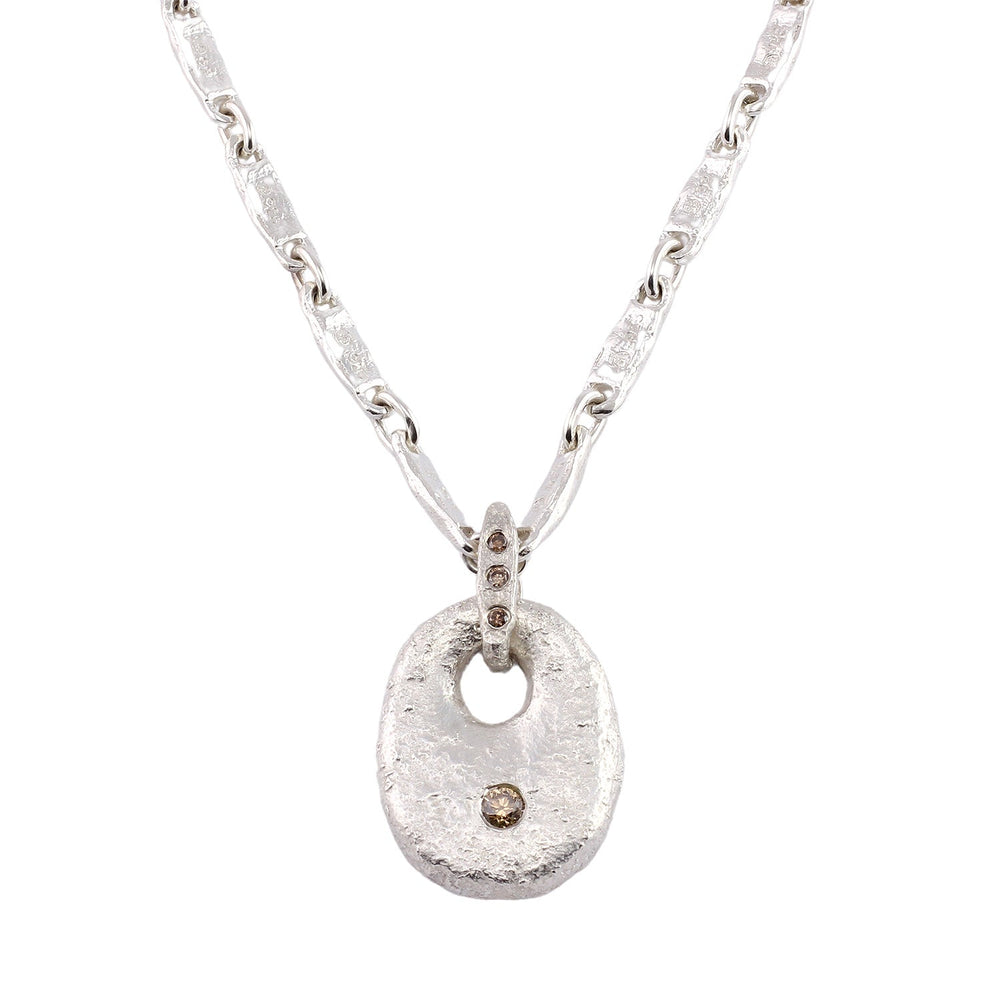 Sterling silver and grey diamond pendant 1.5"long- approx. .12ctw 20.5g